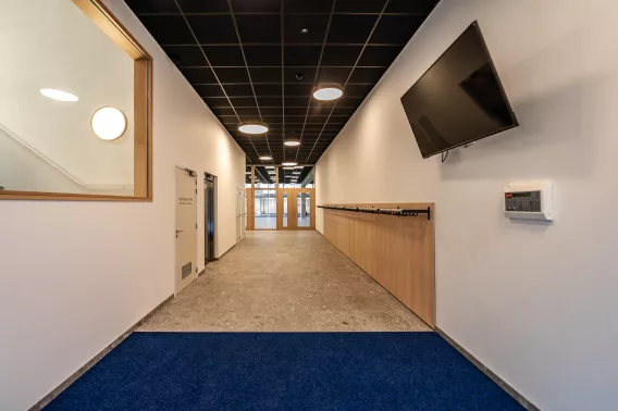 - De technieken zijn zoveel als mogelijk in verlaagde plafonds voorzien.