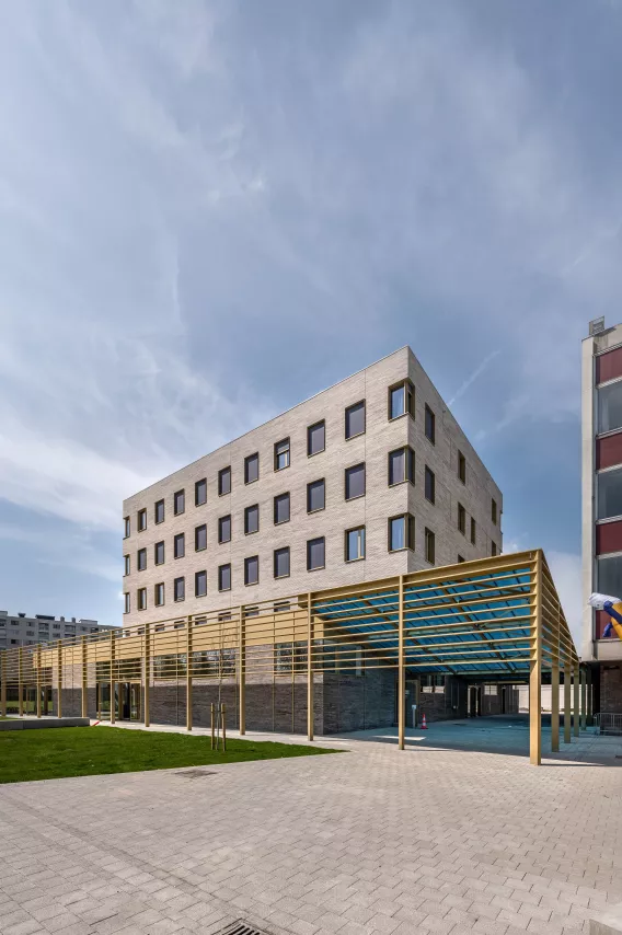 Als oplossing voor beide vraagstukken wordt beslist om het bestaande gebouw te slopen om zo plaats te maken voor een nieuw, hoger en energieneutraal volume waarin zowel de bestaande functies als het internaat worden voorzien.