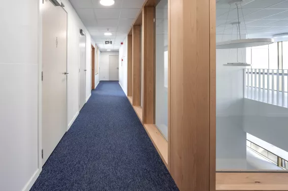 - Alleen de schil en de kern van het gebouw heeft een constructieve functie. De overige wanden zijn niet-dragend en eenvoudig demonteerbaar.