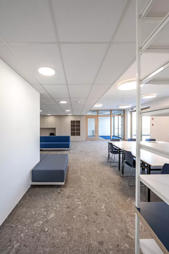 De ambitie bij het ontwerp voor het internaat was om af te stappen van het typische plan van een gang met aan beide kanten kamers. In de plaats daarvan werd er voor een plan geopteerd waar lus-vormige gangen aan de ene kant worden geflankeerd met kamers, terwijl aan de andere kant een patio, binnenvides en gemeenschappelijke ruimtes zich afwisselen. De openheid zorgt niet alleen voor meer daglicht, maar stimuleert hiermee ook de sociale interactie van de verschillende bewoners. En dit over verschillende verdiepingen heen.