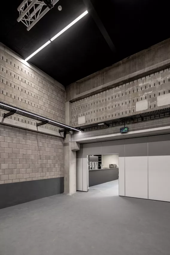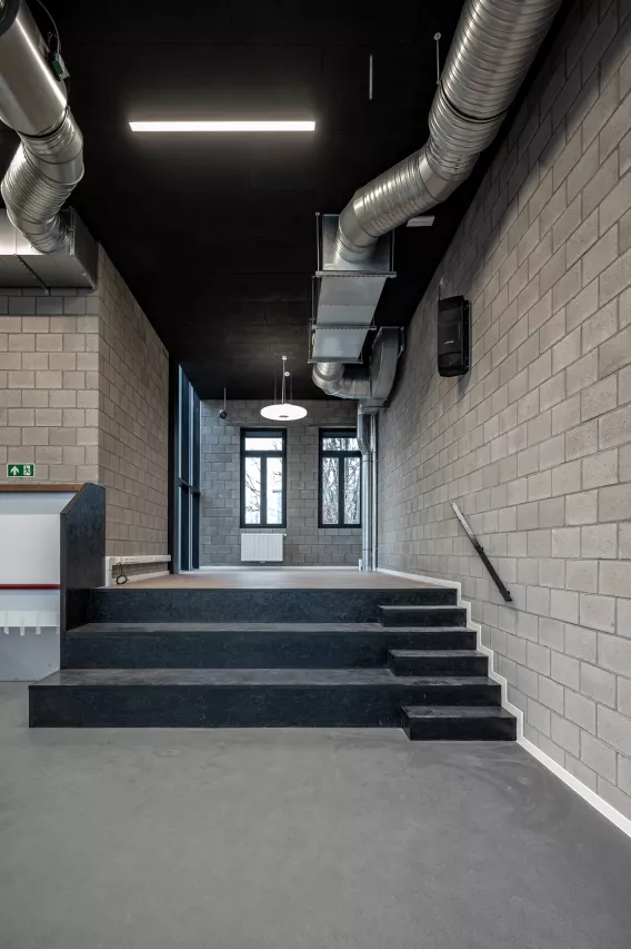 Dubbel en polyvalent gebruik van de gevraagde ruimtes voor Jeugdhuis en Cultuur zijn hier een must. Ook het spel van splitlevels in confrontatie met de te behouden voorgevel zorgen voor extra oppervlakte.