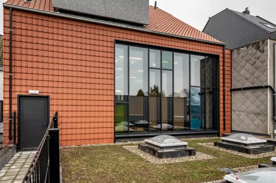 Een nieuw jeugdhuis opgetrokken achter een historische gevel in het centrum van Lochristi
